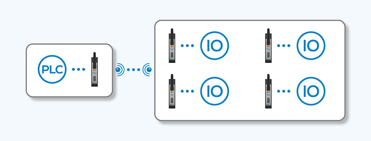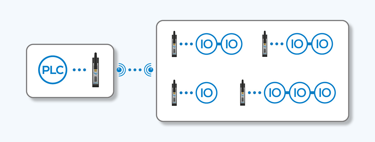 Our intelligent radio decouples the real-time interface from the radio interface: pre-processed data packets reduce the necessary bandwidth and redundant data packets are not transmitted in the first place. As a result, the radio links are not overloaded and fieldbus errors are avoided. In addition, the real-time capability of the PLC and its maximum bus speed can be maintained.